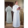 Abbey Brand white women's cassock is tailored with a raised collar, and proportionally pleated in front and back for a fitted look for women. Available with either button or snap front closure. 65% polyester / 35% cotton blend fabric drapes nicely, resists wrinking and keeps you comfortable. Abbey Brand clerical garments are designed, tailored and finished to give you a comfortable fit and years of use!