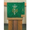 R.J. Toomey Maltese Cross Series "Cross with Crown" 2'W x 4'H worship banner, with pole hem for use with standard banner pole, features densely-embroidered, gold and silver metallic Fleur-de-Lis Cross with crown design, on purple jacquard fabric with Maltese Cross pattern. Ideal for your Lenten worship services. Matching stoles, altar frontals, pulpit scarfs, bookmarks and parament sets also available - search "Maltese Cross." Banner series designs let you display banners throughout the year. Banners are fully-hemmed to fit easily on standard banner pole or Celebration Banners pole hem banner stands (see Pole Hem Banner Stands). Learn More -